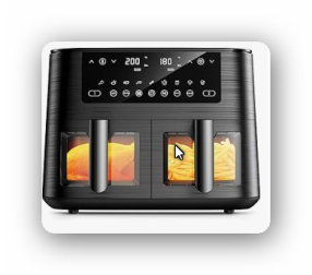 Die Heißluftfriteuse ist mit hundert Euro vergleichsmäßig billig. Wichtig sind 2 Fächer. Damit kann man parallel 2 verschiedene Gerichte machen.