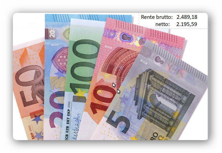 Am Monatsende gibt es die Rente. Von der erwirtschaftenden Rente muss man natürlich auch noch Abgaben zahlen? Im Einzelnen sind das Steuern auf die Rente, Beitrag zur Krankenversicherung und Beitrag zur Pflegeversicherung.