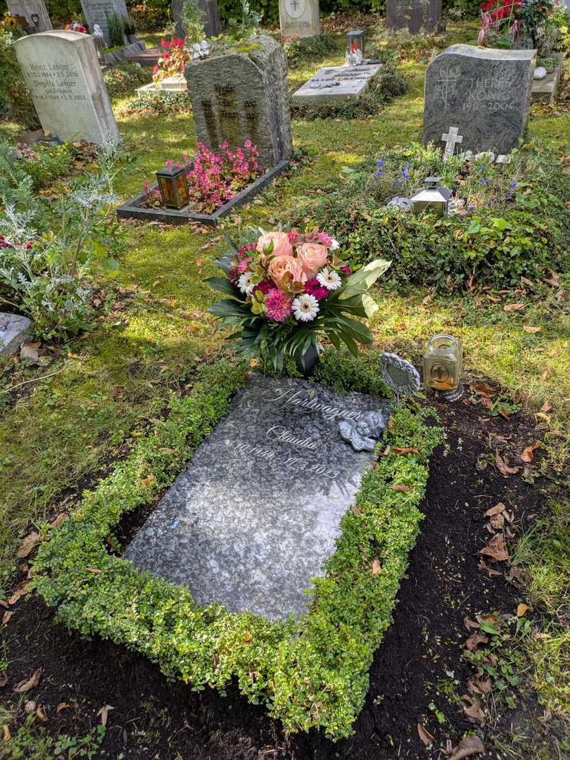 Stefan hat bereits einen Blumenstrauß auf das Grab gebracht. Es ist zu kalt, dass ich mit meinem Elektrorollstuhl aufs Grab fahre. Dafür hätte sie Verständnis. Sie weiß, dass ich immer an sie denke, und sie nie vergessen werde.